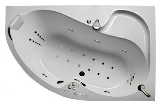 Габариты ванны составляют 160 см в длину и 105 см в ширину. Такая конфигурация обеспечивает удобство использования при сравнительно компактных размерах. Глубина чаши рассчитана на оптимальный объём воды для принятия процедур без перерасхода ресурса.