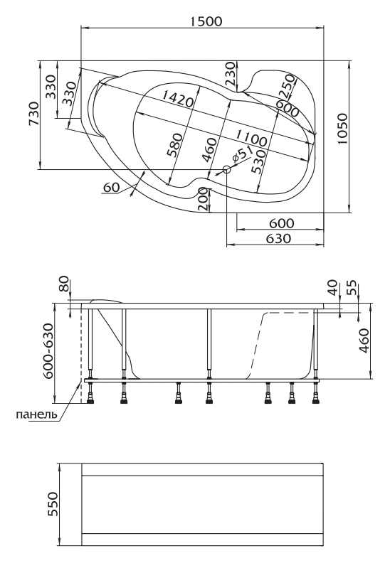 Акриловая ванна 1MarKa Aura спроектирована с асимметричной чашей для рационального использования пространства. Длина изделия составляет 150 см, ширина — 105 см, что обеспечивает комфортное размещение пользователя при ограниченных габаритах помещения. Геометрия ванны разработана с учетом эргономики, позволяя удобно расположиться без необходимости дополнительного оборудования. Чаша изготовлена из цельного листа санитарного акрила, сохраняющего однородность материала по всей толщине и исключающего риск растрескивания или деформации. Встроенный перелив предотвращает переполнение, гарантируя безопасное использование без риска затопления. Стабильность конструкции обеспечивается равномерным распределением веса, ванна выдерживает эксплуатационные нагрузки в течение длительного времени.