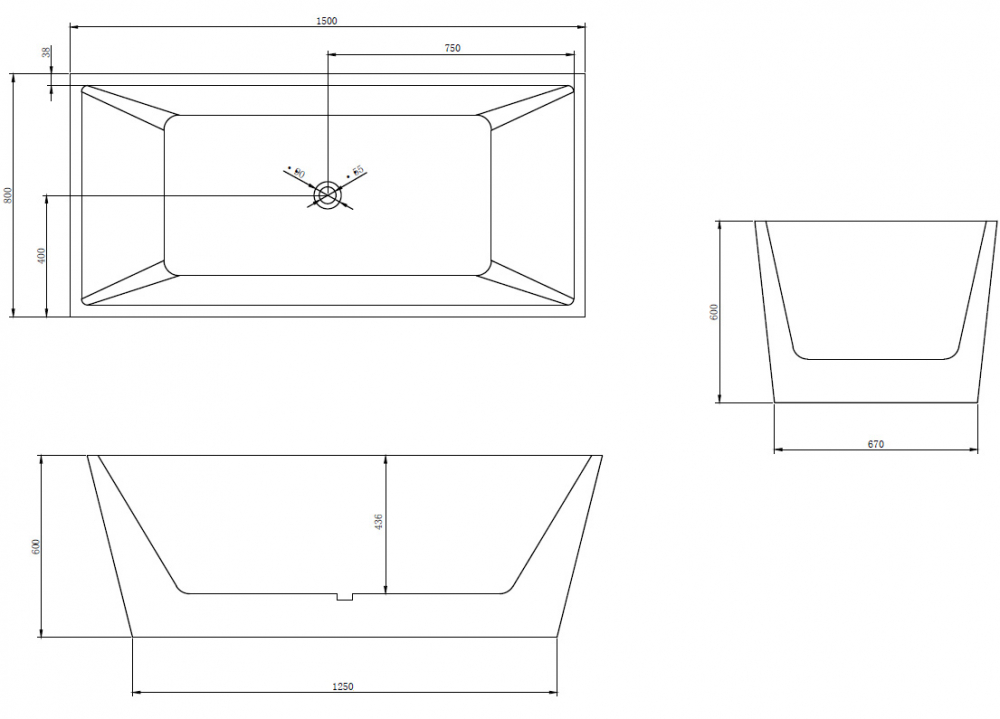 Прямоугольная конфигурация чаши отличается строгими геометрическими линиями. Каркасная система включает металлические усилители и регулируемые опорные элементы. Высота установки может быть изменена в пределах ±2,5 см от базового значения. Толщина акрилового слоя составляет стандартные 4 мм с дополнительным армированием.
