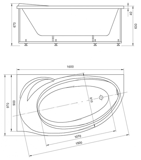 Базовый набор включает опорный каркас и комплект слив-перелив. Фронтальная панель не входит в стандартную поставку, приобретается дополнительно в зависимости от планировки и дизайна помещения. Для повышения комфорта могут быть использованы подголовники и поручни, которые предлагаются отдельно. Антискользящее покрытие в данной модификации отсутствует. Монтаж выполняется к стене, что упрощает подключение коммуникаций. Конструкция чаши рассчитана на стандартные условия установки, возможна интеграция с различными системами смесителей и дополнительного оборудования.