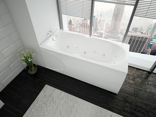 Базовый комплект включает каркас и систему слив-перелив. Для закрытия монтажной зоны предусмотрена возможность приобретения фронтального или бокового экрана, подбираемого под конкретный размер чаши. Аксессуары, такие как подголовники, ручки или поручни, поставляются отдельно и могут быть установлены по желанию пользователя. Все дополнительные элементы разработаны с учетом совместимости с данной моделью, что исключает необходимость внесения изменений в конструкцию. Каркас допускает корректировку по запросу, если требуется адаптация под особенности помещения или конкретные условия монтажа.
