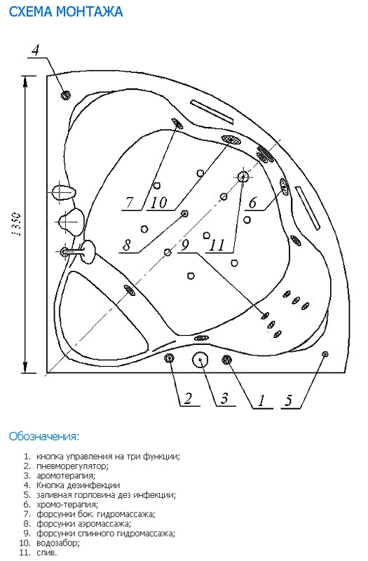 Акриловая ванна Акватек Галатея 135x135 предназначена для углового монтажа с опорой на стену. Габариты изделия — 135х135 см при высоте 67 см. Чаша вмещает до 270 литров воды, что обеспечивает комфортное использование в повседневных условиях. Производство ведется из 100% литьевого акрила толщиной 4 мм, отличающегося устойчивостью к повреждениям, химическим реагентам и изменению цвета. Поверхность сохраняет геометрию даже при постоянных нагрузках. Нескользящее основание снижает риск травм и повышает безопасность. Стандартное расположение перелива упрощает подключение к канализационной системе, диаметр сливного отверстия — 5,2 см. Ванна имеет встроенный цельносварной металлический каркас с заводской фиксацией, что обеспечивает стабильность конструкции и исключает необходимость в дополнительном усилении. Каркас поставляется вместе с изделием, полностью готов к монтажу.