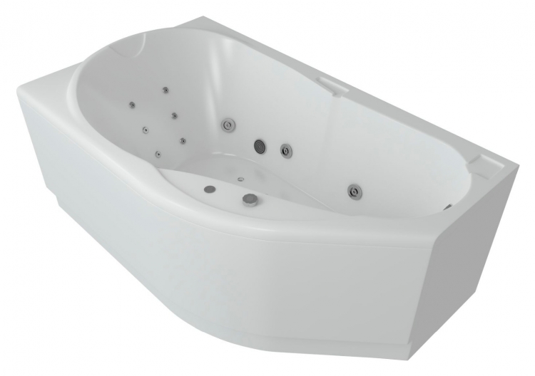 Ванна предназначена для пристенной установки. Фронтальный и боковой экраны приобретаются отдельно, что позволяет адаптировать конструкцию под конкретное пространство. Подголовники и ручки поставляются отдельно и могут быть установлены по желанию. Опции, такие как встроенные смесители, гидромассаж, аэромассаж и хромотерапия, допускают индивидуальную комплектацию. Система защиты от сухого пуска, изменения конфигурации каркаса и дополнительные поручни могут быть интегрированы по требованию.