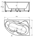 Акриловая ванна Акватек Вега 170x105 правая предназначена для пристенной установки и рассчитана на комфортное использование в домашних условиях. Асимметричная форма позволяет рационально организовать пространство ванной комнаты. Изделие имеет габариты 170х105 см, высоту с опорой 67 см и внутренний объем 270 литров. Перелив размещён по центру, диаметр сливного отверстия составляет 5,2 см.