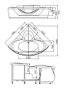 Угловая форма чаши оптимизирована для установки в помещениях ограниченной площади. Каркасная система включает стальные усилители и регулируемые опорные элементы. Толщина акрилового слоя составляет 4 мм с дополнительным армированием стекловолокном толщиной 5 мм.