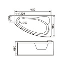 Асимметричная угловая форма оптимизирована для установки в правый угол помещения. Каркасная система включает стальные усилители и регулируемые опорные элементы. Толщина акрилового слоя составляет 4,5 мм с дополнительным армированием стекловолокном. Антискользящее покрытие нанесено на дно чаши методом холодного напыления.