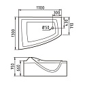 Угловая асимметричная форма чаши оптимизирована для установки в угол помещения. Левосторонняя модификация определяет расположение функциональных элементов. Каркасная система включает стальные усилители и регулируемые опорные элементы. Толщина акрилового слоя составляет 4-5 мм с дополнительным армированием.