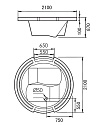 Акриловая ванна Gemy G9060 O представляет собой встраиваемую модель круглой формы диаметром 210 см. Высота изделия составляет 87 см, глубина чаши — 54 см, общий объем — 550 литров. Конструкция предназначена для одновременного использования двумя людьми. Модель произведена в Китае из акрилового материала с гарантией 3 года.