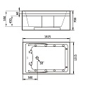 Прямоугольная форма чаши с правосторонним исполнением обеспечивает рациональное использование пространства. Конструкция включает систему гидромассажа с 14 хромированными форсунками и функцией массажа спины. Система оснащена защитой от сухого пуска и регулировкой интенсивности массажа.