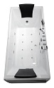 Модель оснащена центрально расположенным сливным отверстием стандартного диаметра 5 см. Комплектация включает встроенную систему гидромассажа с шестью хромированными форсунками, системой аэромассажа с восемью форсунками, функцией озонирования и хромотерапии. Электронная система управления обеспечивает регулировку интенсивности массажа.