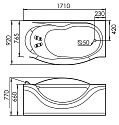 Акриловая ванна Gemy G9072 K R представляет собой пристенную прямоугольную модель правосторонней модификации. Габаритные размеры составляют 171×92×77 см, объем — 220 литров. Конструкция изготовлена из акрилового материала и предназначена для стационарной установки у стены.