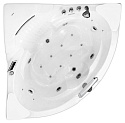Угловая конфигурация чаши оптимизирована для установки в помещениях ограниченной площади. Каркасная система включает стальные усилители и регулируемые опорные элементы. Толщина акрилового слоя составляет 4 мм с дополнительным армированием стекловолокном. Форсунки гидромассажа выполнены в хромированном исполнении.