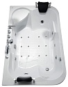 Температурный режим эксплуатации — от -30°C до +100°C. Система хромотерапии обеспечивает подсветку воды с возможностью выбора цвета. Подголовник в комплекте обеспечивает дополнительный комфорт при эксплуатации.