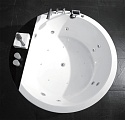 Круглая форма чаши обеспечивает равномерное распределение объема. Каркасная система конструкции включает стальные усилители и опорные элементы. Модель оснащена системой гидромассажа с шестью хромированными форсунками и системой аэромассажа с восемью форсунками.