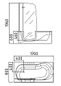 Прямоугольная форма чаши с левосторонней ориентацией оптимизирована для установки вдоль стены. Каркасная система включает механизм регулировки высоты с диапазоном корректировки ±4 см. Толщина акрилового слоя составляет 5 мм с дополнительным армированием для обеспечения жесткости конструкции.