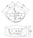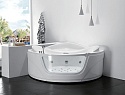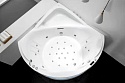 Угловая форма чаши оптимизирована для размещения в углу помещения. Конструкция включает систему гидромассажа с 10 форсунками хромированного исполнения и систему аэромассажа с 17 форсунками. Электронная система управления обеспечивает регулировку интенсивности массажа.