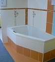 Модель предлагает два варианта установки: встраиваемый монтаж в подготовленную нишу или пристенное размещение. Классический белый цвет акриловой поверхности гармонично сочетается с различными стилями интерьера. Угловая пятиугольная форма оптимально использует пространство помещения, создавая эргономичную зону для релаксации. Производитель предусмотрел стандартное отверстие под переливную систему, обеспечивающее совместимость с большинством современных сифонов.