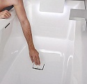 Чаша имеет оптимальный наклон обеих спинок, обеспечивающий комфортное положение тела. С левой стороны предусмотрен подголовник, также включенный в комплект, для поддержки шеи. Гладкая поверхность акрила упрощает уход, позволяет использовать стандартные моющие средства, не требующие специальных составов. Подголовник дополнительно оснащен подсветкой, что облегчает визуальную ориентацию в темное время суток. Слив-перелив интегрирован в конструкцию и обеспечивает надежное отведение воды.