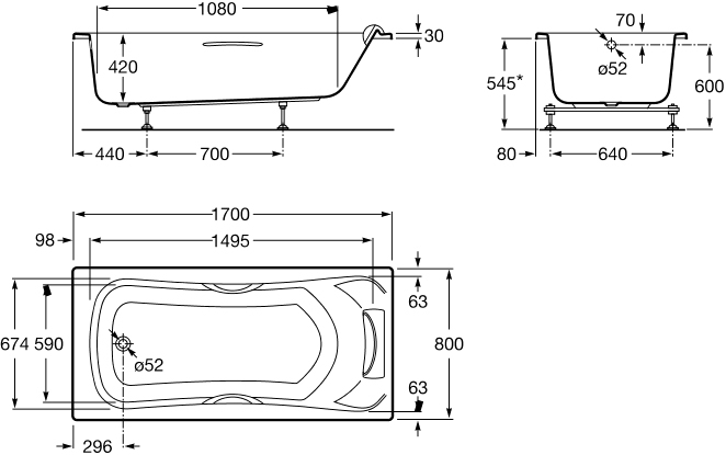 Монтаж ванны осуществляется с использованием пристенной схемы, что облегчает установку в стандартных ванных комнатах. Ручки, слив-перелив и ножки приобретаются отдельно, что позволяет адаптировать ванну под индивидуальные требования. Прямоугольная форма и стандартные габариты 170x80 см обеспечивают совместимость с большинством систем водоотведения и аксессуаров. Конструкция рассчитана на ежедневную эксплуатацию и соответствует нормативам эргономики и безопасности.