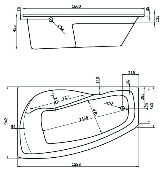 Чаша имеет анатомическую форму с интегрированным подголовником, который поддерживает шейно-плечевую область. Продуманная форма бортиков предотвращает разбрызгивание воды при наполнении и снижает риск случайного скольжения. Акрил обладает низкой теплопроводностью, благодаря чему вода дольше сохраняет температуру.