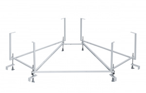 Симметричная угловая форма отличается от традиционных прямоугольных решений, предлагая компактное размещение в углу помещения. Конструкция предусматривает пристенный монтаж с использованием регулируемых опор, позволяющих выровнять изделие на различных поверхностях. Центральное расположение слива упрощает процесс подключения и обслуживания системы.