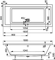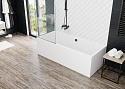 Прямоугольная форма чаши обеспечивает эффективное использование пространства помещения. Пристенный вариант установки требует монтажа вплотную к стене с трех сторон. Отсутствие встроенных ножек предполагает необходимость использования отдельно приобретаемой опорной системы.