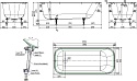 Форма ванны — прямоугольная. Пристенный тип монтажа способствует экономии пространства и позволяет оптимально вписать её в интерьер дома или квартиры. Конструкция ванны предусматривает стандартное расположение слива и перелива, что облегчает подбор и установку необходимых комплектующих, приобретаемых отдельно.