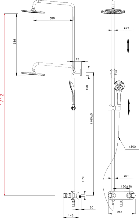 душевой шланг / душевая лейка / аэратор / держатель для душа / переключатель потоков
