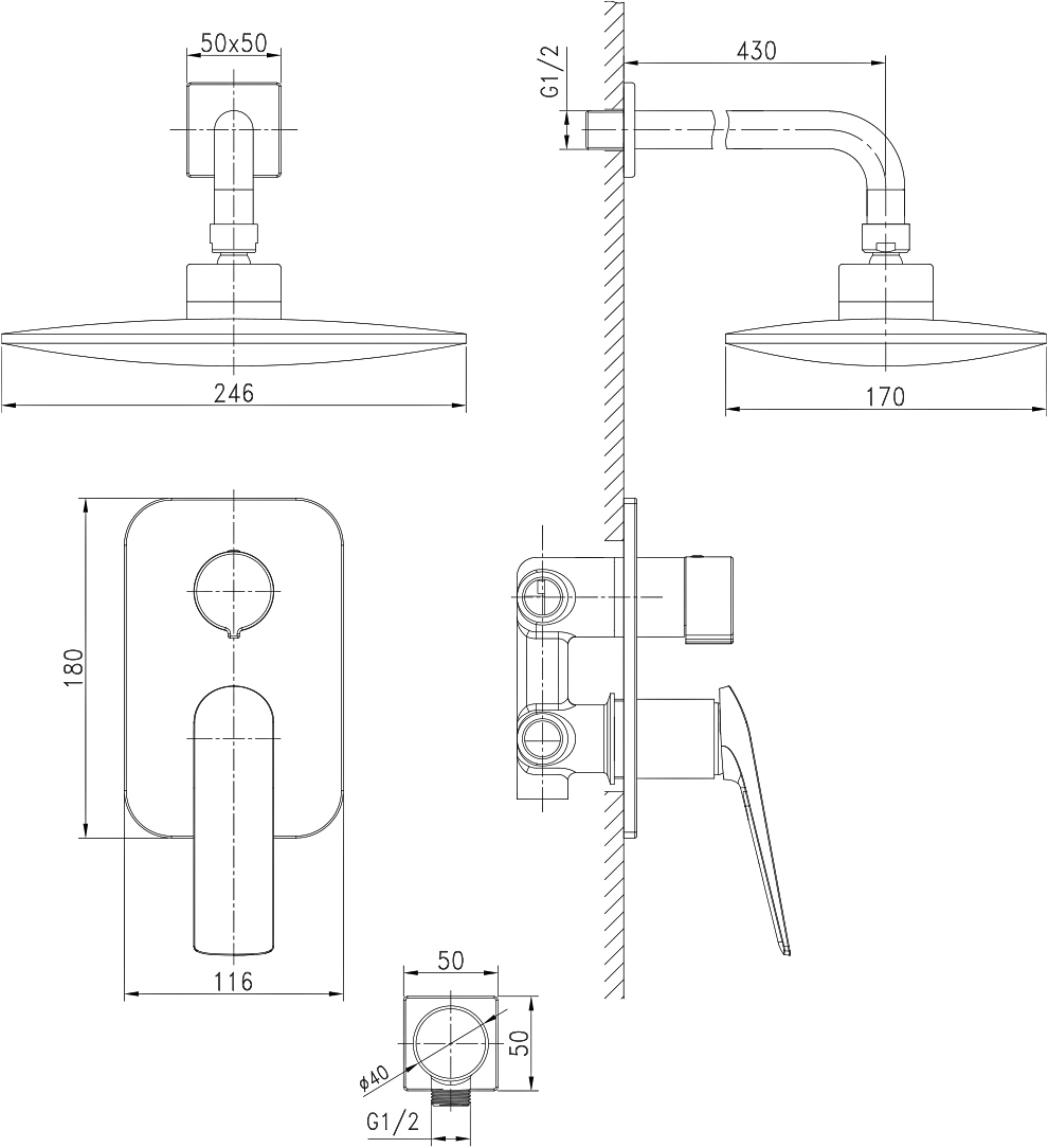 душевой шланг / душевая лейка / кронштейн для верхнего душа / держатель для душа / переключатель пот