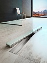 Водоотводящий желоб из нержавеющей стали (обработанной методом травления и пассивации, а также прошедшей электрохимическую полировку). Самоклеящиеся ленты для качественной гидроизоляции. Сифон прочно соединен с желобом и гарантирует 100% водонепроницаемость. Регулируемый по высоте. Высота монтажа от 55 мм. Высокая скорость стока возможна благодаря двухкамерному сифону.