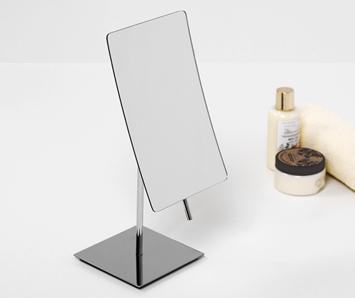 Зеркало косметическое Wasserkraft (Вассеркрафт). Настольное. С трехкратным увеличением. С удобной ручкой. Ручка позволяет регулировать наклон зеркала. Поверхность зеркала остается чистой, без отпечатков пальцев. С трехкратным увеличением. Вращается на 360 градусов. На антискользящем основании. Материал основы нержавеющая сталь, латунь. Покрытие хром/никель. Уплотнительные пластиковые кольца. Глубина 178 мм. Ширина 132 мм. Высота 295 мм.