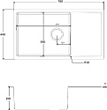 Мойка, сливная арматура с корзинчатым вентилем 3 1/2, сифон с отводом, комплект креплений, шаблон.