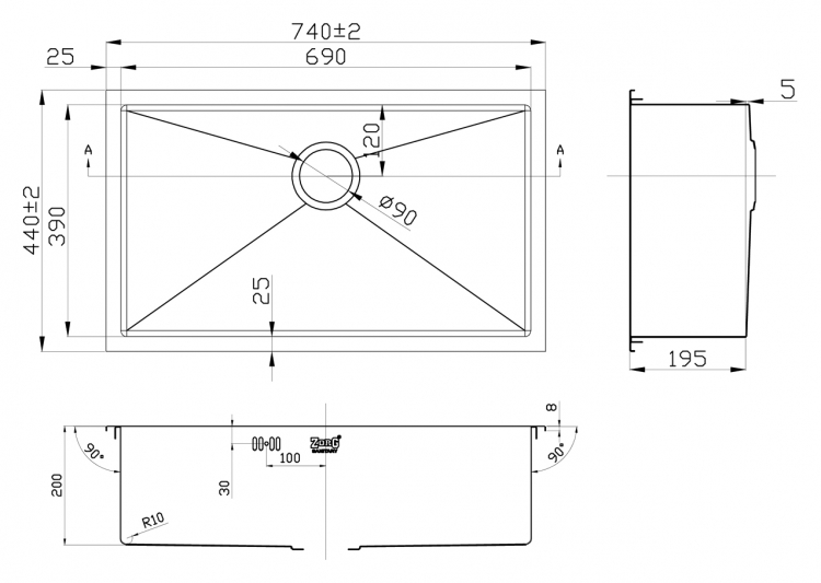 Мойка кухонная Zorg Inox RX-7444 представляет собой изделие из высококачественной нержавеющей стали AISI 304, где практичность и долговечность сочетаются с лаконичным современным дизайном. Модель с одной чашей размером 740×440×200 мм предлагает достаточно просторную рабочую зону для комфортного мытья посуды и подготовки продуктов. Брашированная матовая поверхность, обработанная специальной щеткой в одном направлении, создает выразительную текстуру, устойчивую к появлению мелких царапин и следов от пальцев. Скругленные внутренние углы с радиусом R-10 не только облегчают процесс очистки, но и способствуют равномерному распределению напряжения материала.