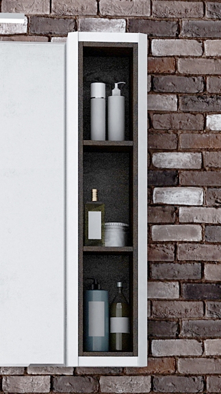 Полка Акватон Брук 20 разработана для установки рядом с зеркалом и используется как функциональный элемент системы хранения. Корпус выполнен из влагостойкой древесноволокнистой плиты средней плотности, устойчивой к нагрузкам и повреждениям. Прямоугольная форма обеспечивает рациональное использование пространства. Размеры составляют: ширина 20 см, высота 80 см, глубина 17,4 см. Благодаря такой конфигурации изделие остаётся компактным, но при этом предоставляет достаточный объём для размещения предметов личной гигиены, косметики или мелких аксессуаров. Отделка корпуса представлена тремя вариантами: матовая, глянцевая и плёночная. Каждое покрытие препятствует проникновению влаги в структуру материала, снижает риск повреждений, обеспечивает сохранение внешнего вида в течение всего срока эксплуатации.