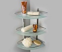С угловой полкой Wasserkraft K-3133 водные процедуры станут комфортными. Необходимые душевые принадлежности всегда будут под рукой и в идеальном порядке. Изделие имеет три яруса из прочного матового стекла с боковыми ограничителями. Металлические компоненты этажерки выполнены из влагостойкой высококачественной латуни с хромоникелевым покрытием. Модель в современном дизайне отлично смотрится в углу ванны или душа и за счет округлой формы не причиняет неудобств. Уплотнительные пластиковые кольца надежно скрепляют комплектующие и обеспечивают длительный срок службы полки<br>
