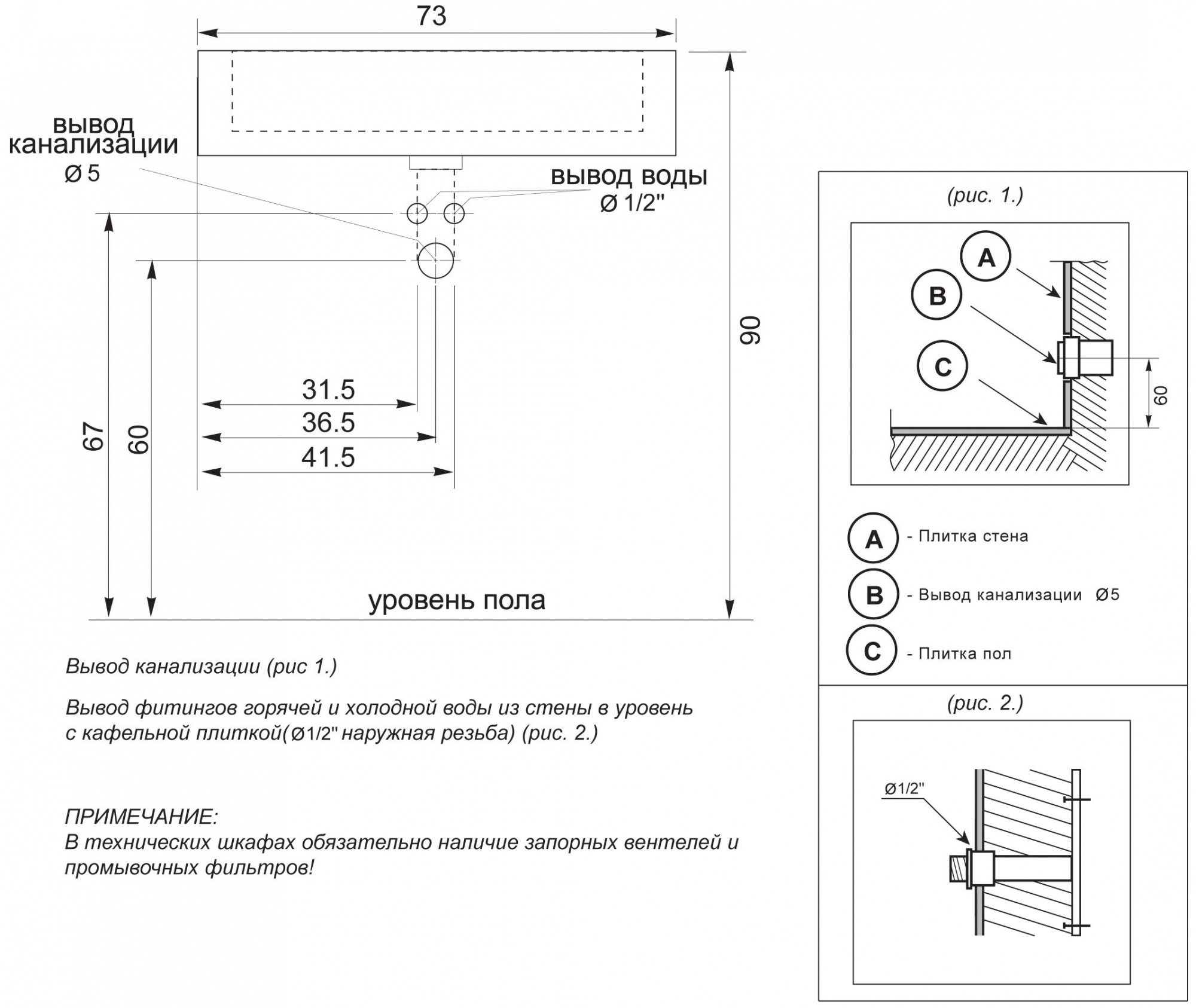 Расположение смесителя