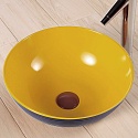Раковина накладная Melana. Круглая. Для установку на столешницу. Без отверстия под смеситель. Без перелива. Материал санкерамика. Цвет внутри желтый, снаружи синий.