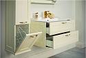 Конструкция шкафа демонстрирует продуманное зонирование внутреннего пространства. Верхняя часть оборудована полками для размещения банных принадлежностей и косметики, в то время как нижний сектор дополнен вместительным выдвижным ящиком для хранения более мелких предметов. Такая организация позволяет рационально распределять различные категории вещей, поддерживая порядок и обеспечивая быстрый доступ к содержимому. Система плавного доводчика обеспечивает бесшумное и аккуратное закрывание дверок, сохраняя целостность механизмов и поддерживая спокойную атмосферу в помещении.