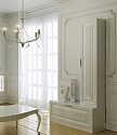 Шкаф-пенал Aqwella 5 stars Империя П35 обладает удобной подвесной конструкцией. Изделие из прочной испанской МДФ FINSA с внешней стороны покрыто белоснежной эмалью. Пять вместительных отделений удобны для хранения большого количества бытовых принадлежностей. Дверца с австрийской системой доводки Blum закрывается мягко и бесшумно. Изнутри шкаф дополнен отделкой под ткань Eolo.