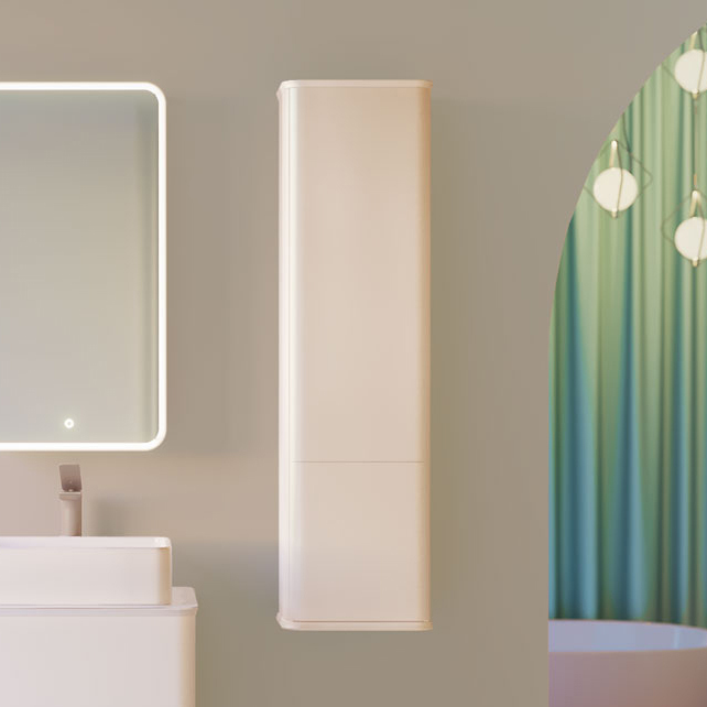 Шкаф-пенал Jorno Pastel 125 - белый жемчуг, подвесной. С двумя дверцами, петли с правой стороны. Выполнен в современном стиле и дополнит большинство интерьеров ванных комнат.