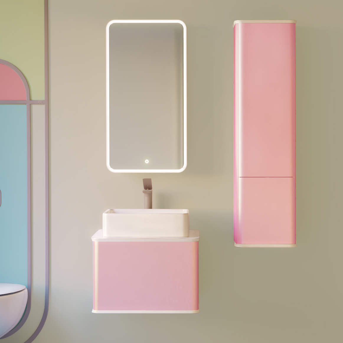 Шкаф-пенал Jorno Pastel 125 розовый иней