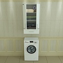 Внутреннее пространство изделия включает одну секцию с ящиком и дверцами. Ящик оснащён направляющими, обеспечивающими плавное скольжение и бесшумное открывание, а дверцы работают на хромированных петлях, обеспечивая долговечность и стабильность конструкции. Такая конфигурация позволяет компактно размещать средства гигиены, косметические принадлежности, мелкую бытовую химию и другие предметы, которые должны быть всегда под рукой. При этом визуальная чистота поддерживается за счёт скрытого хранения предметов за дверцами.