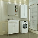 Белый оттенок мебели позволяет интегрировать шкаф в различные интерьерные решения, сочетая с плиткой, сантехникой и текстилем. Хромированная фурнитура добавляет функциональности и современного вида. Все материалы соответствуют стандартам безопасности и бытового применения.