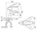 Излив высотой 136 мм обеспечивает высоту подъема струи 120 мм от точки установки. Диаметр выходного отверстия составляет 4 мм. Угол поворота излива ограничен конструкцией и составляет 30 градусов в каждую сторону.