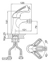Корпус изделия изготовлен из цельнолитой латуни марки CW510L. Толщина гальванического покрытия составляет 0,8 мкм по классу защиты 10 по ASTM B117. Излив фиксированного типа имеет традиционную изогнутую форму с высотой подъема 120 мм от основания.