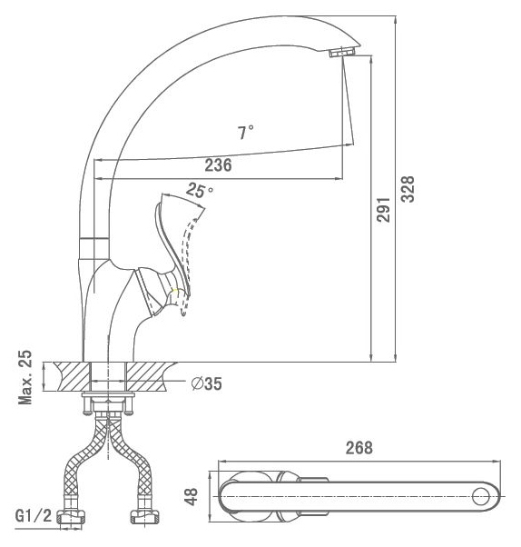 <li>Длина излива: 23.6 см.</li>