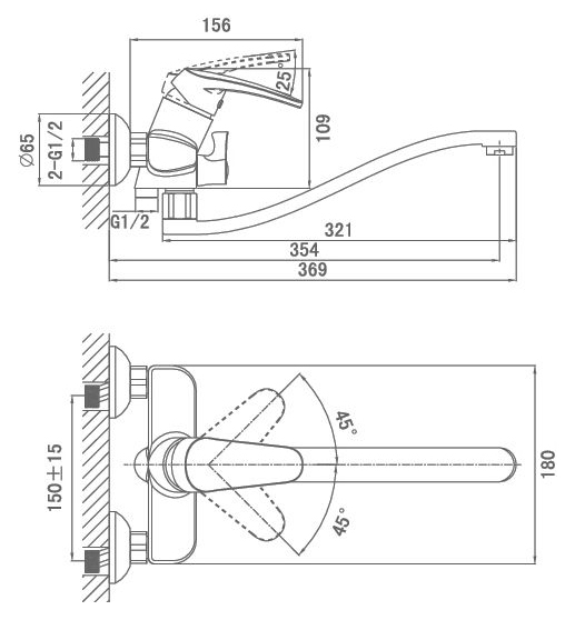 <p>Комплектация включает душевой гарнитур с гибким шлангом. Монтаж осуществляется на стену с использованием двух отверстий на расстоянии 15 см. Подводка выполняется по стандарту 1/2 дюйма. Длина излива составляет 17 см, форма традиционная с фиксированным положением.</p>