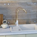 Смеситель для кухни из коллекции Cloud – скромное очарование функциональной роскоши. Элегантное сочетание белого и золотого цветов создает стильный продукт, который подойдет к интерьеру в современном и классическом стиле. Высокий излив (281 мм) поворачивается на 360 градусов, благодаря чему им удобно пользоваться на любой кухонной мойке. В комплекте гибкая подводка и крепеж.