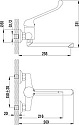 Рычаг имеет удлиненную форму с утолщением на конце, такие смесители еще называют хирургическими, подача и смешивание горячей и холодной воды с помощью керамического картриджа диаметром 40 мм.