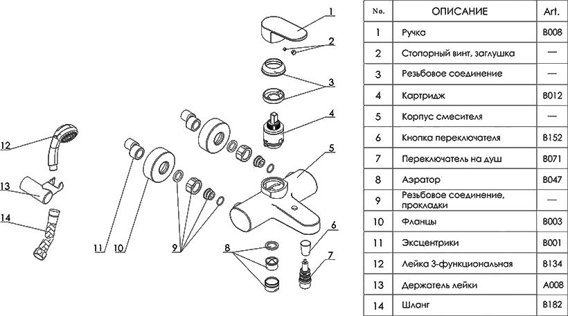 Смеситель Wasserkraft Donau 5301 для ванны с душем